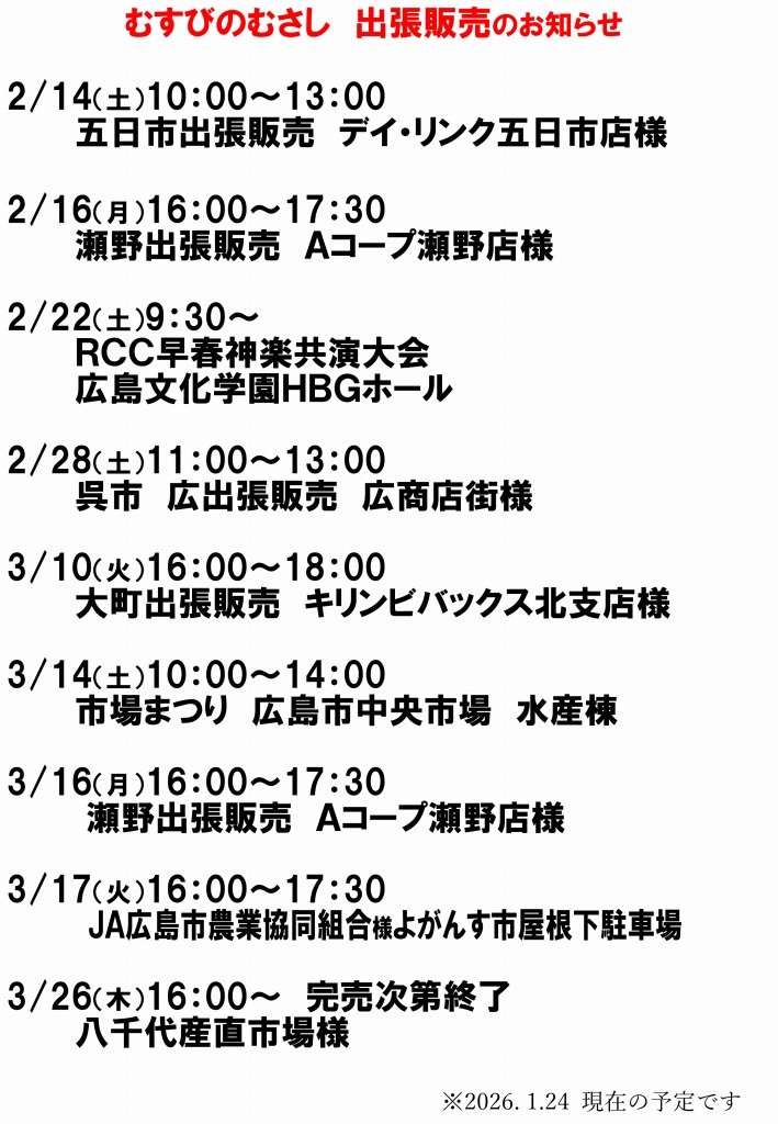 ・西広島駅店と西条駅店は、毎月2回火曜日