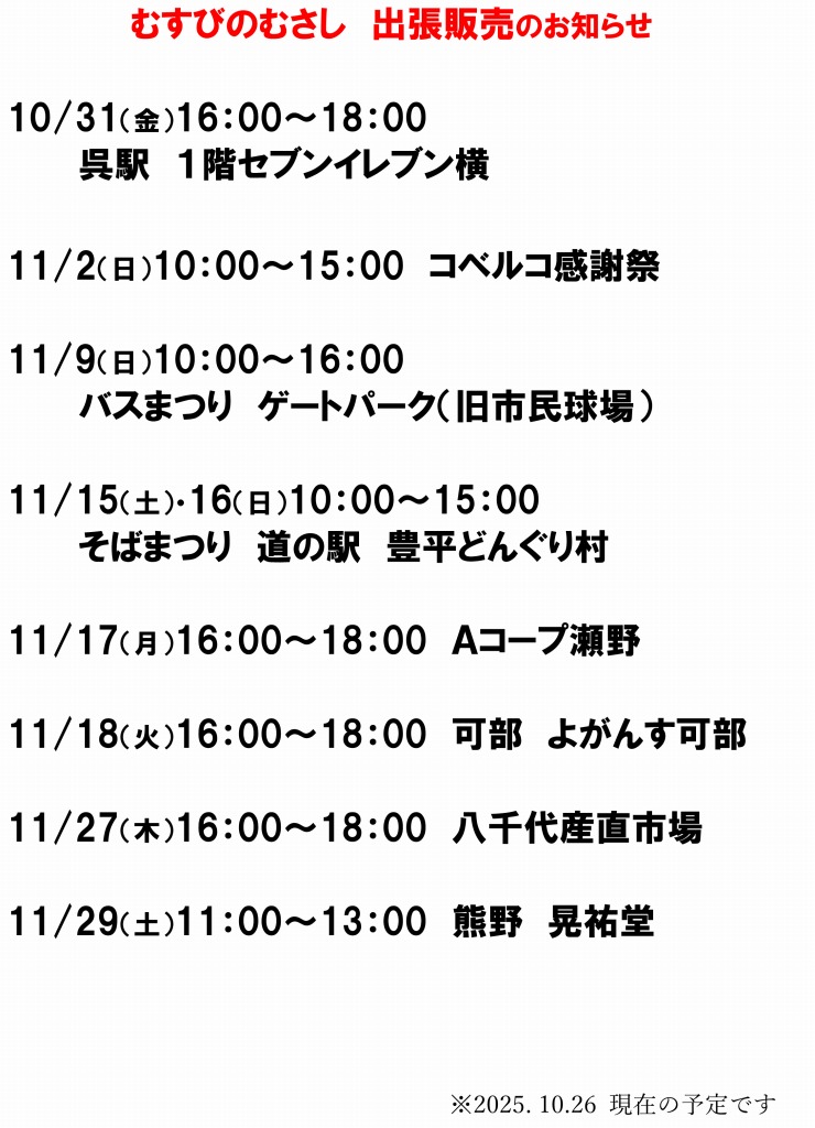 ・西広島駅店と西条駅店は、毎月2回火曜日